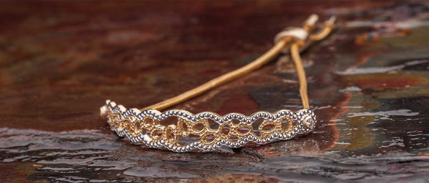 A derivative of the classic bracelet, the Enlace Collection blends tradition with modernity to create something truly special. Delicate chains, an adjustable lock, and a variety of intricate designs, this entirely new and innovative interpretation of hand ornaments are lightweight and durable. A collection perfectly suited to any woman; it takes youthful indulgence to a whole new form. Perfect as a gift to a loved one or a simple celebration of yourself, the Enlace Collection is the embodiment of the bond of togetherness. The collection is created in 22k yellow gold with surface textures and various finishes in rhodium plating
